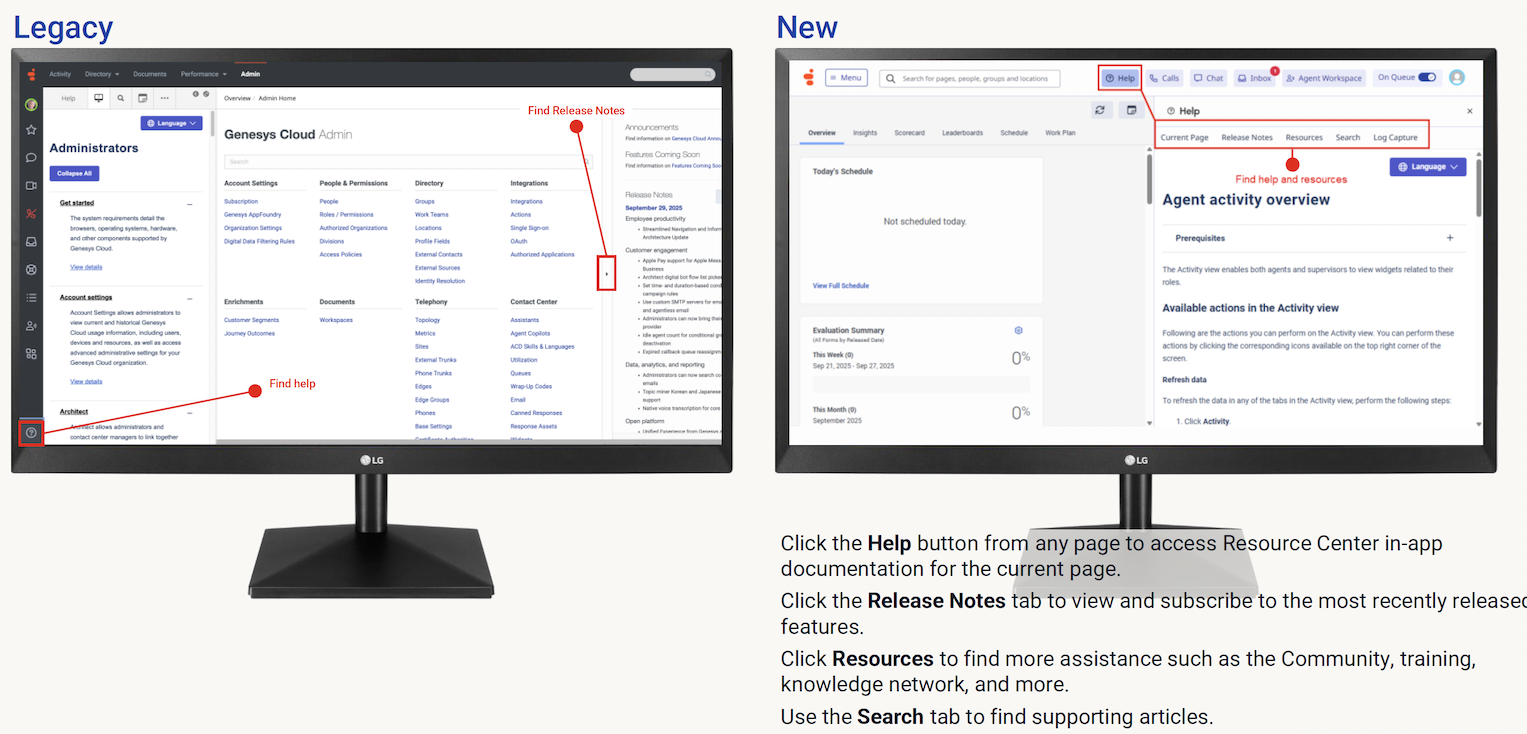 Para obtener más información, consulte Explore la interfaz de Genesys Cloud, Nueva experiencia de navegación unificada que llega a Genesys Cloud post de la comunidad, y las Notas de la versión.