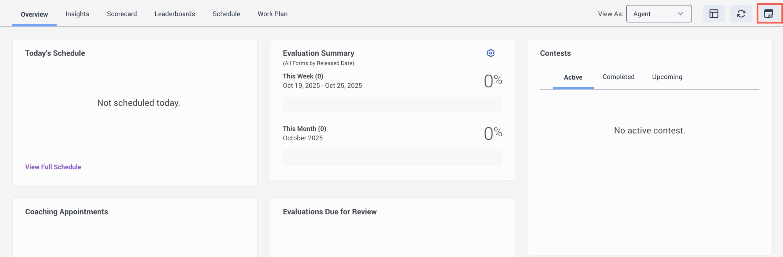 - Administración de personal > Horario del agente > Vista